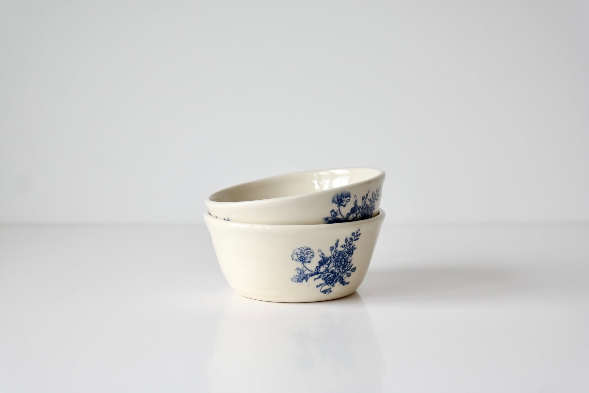 A timeless ivory stoneware bowl adorned with delicate blue florals — classic and understated. Each motif is applied by hand, lending every piece a slightly unique charm. A lovely size for serving, snacking, or simply adding a touch of old-world beauty to open shelving.