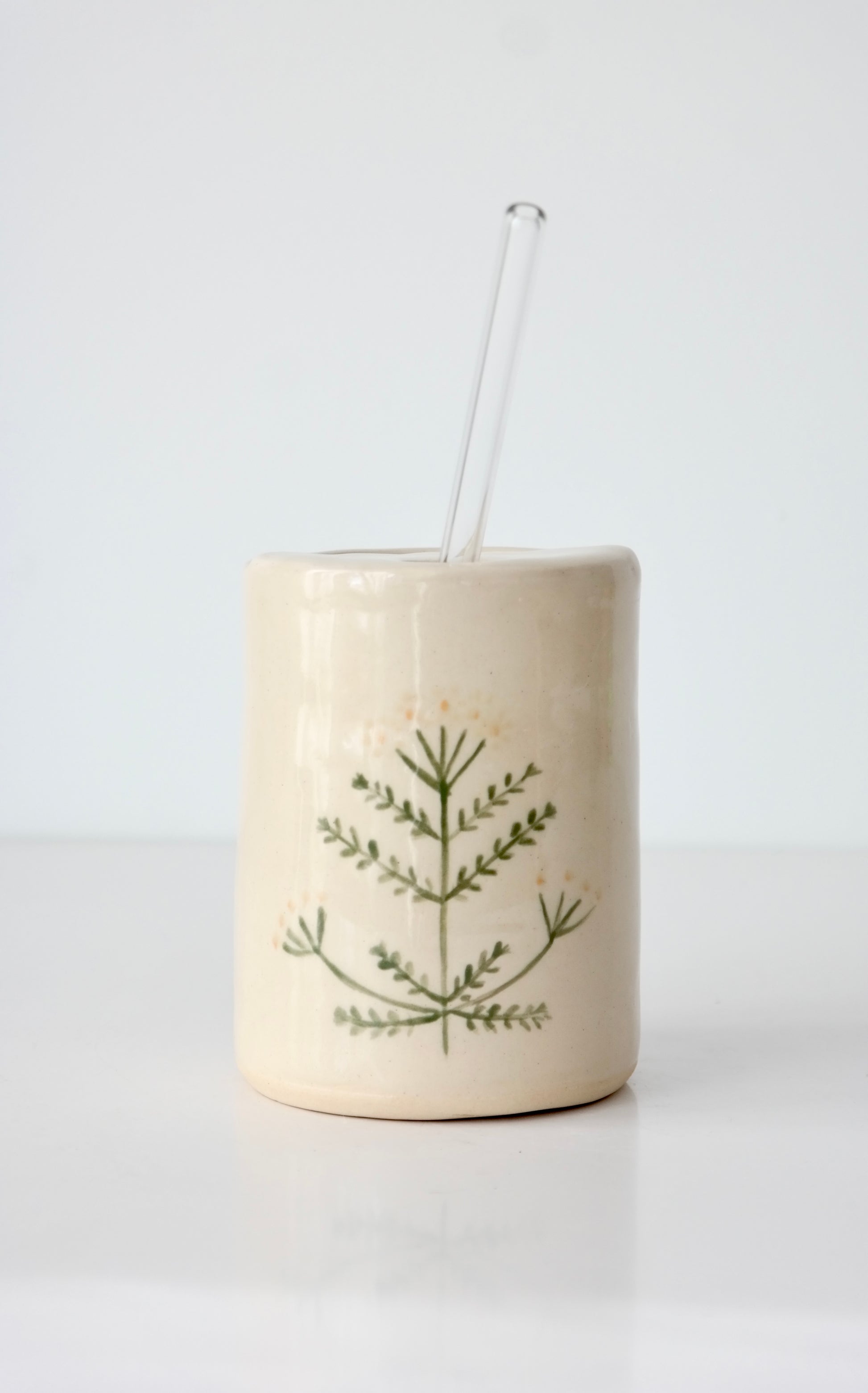 A quiet, Scandinavian-inspired piece, simple in form and thoughtful in detail. This hand-thrown tumbler features a softly scalloped rim with a subtle notch to hold a glass straw in place.