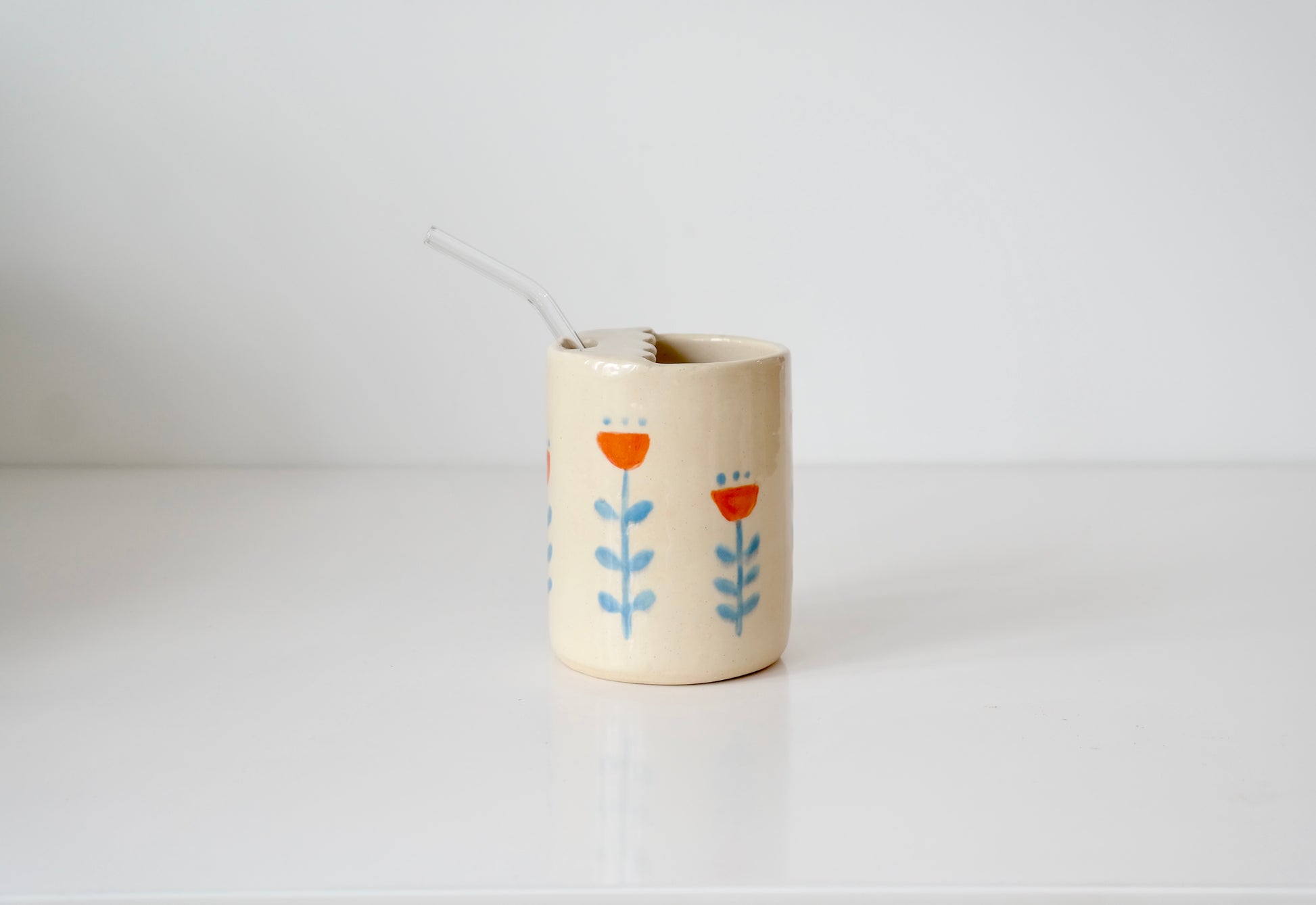 A quiet, Scandinavian-inspired piece, simple in form and thoughtful in detail. This hand-thrown tumbler features a softly scalloped rim with a subtle notch to hold a glass straw in place.